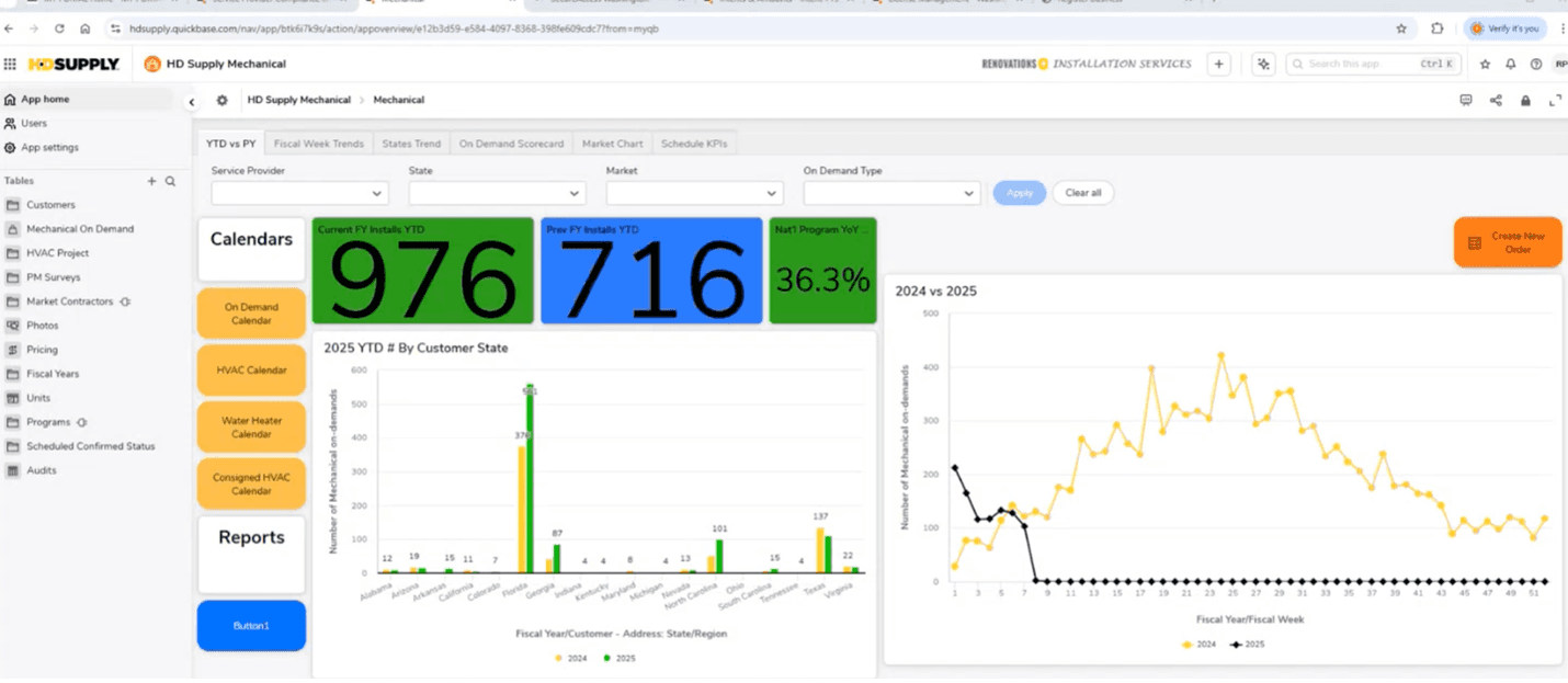 With Quickbase dashboards, field leaders can track performance week-to-week, state-by-state, and customer-by-customer.